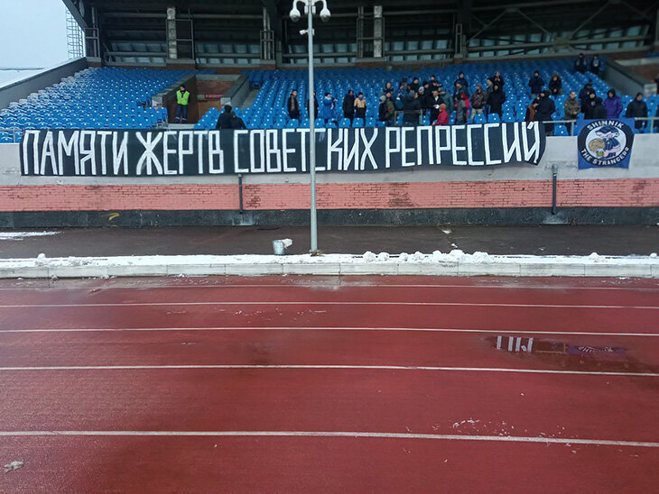 В конце октября удивили фанаты «Шинника»: они подготовили перфоманс, вспомнив о советских политзаключенных. Лозунги: «Памяти жертв советских репрессий» и «В цветах «Шинника» нет красного».