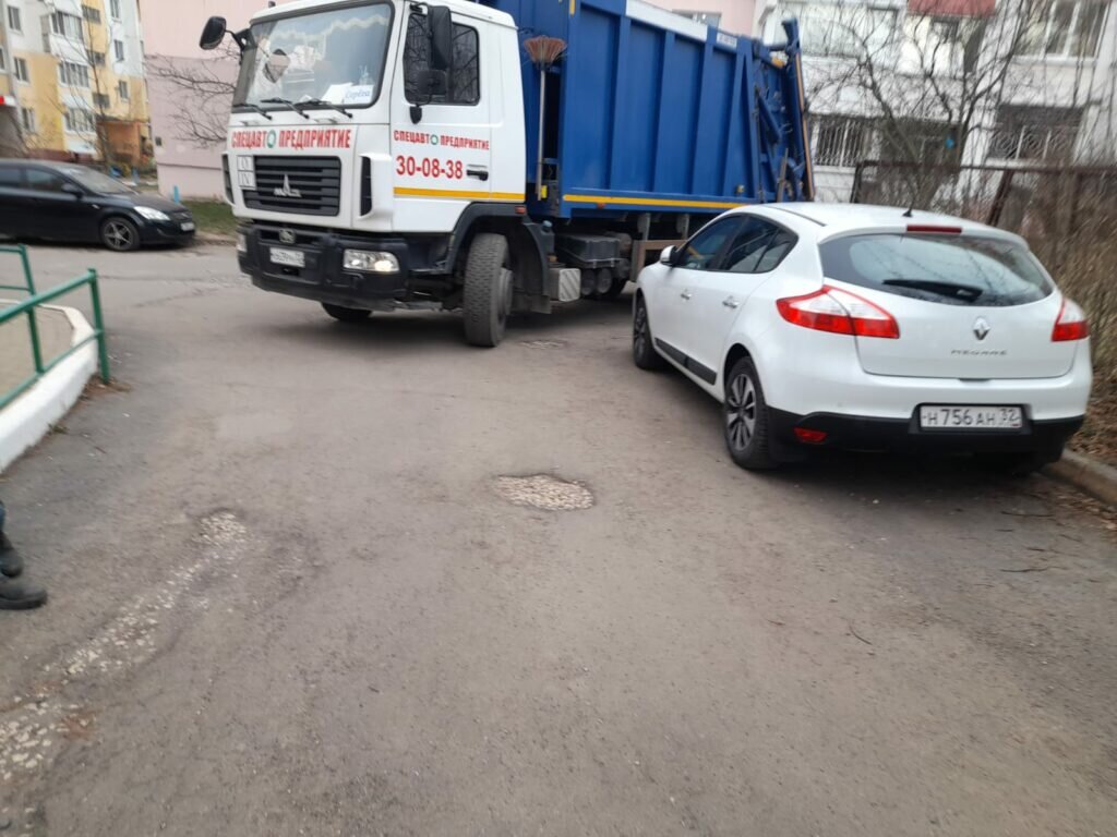 Автохамы заблокировали подъезд к мусорным контейнерам на улице Романа Брянского