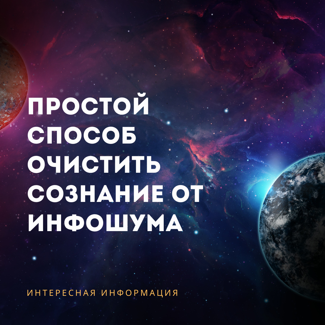Нас ежедневно окружает огромное количество информации. Мы впитываем её со всех сторон, причём в большинстве случаев неосознанно. Мы листаем ленту соцсетей вольно или невольно захватываем информацию из постов, которые пролистываем мимо. Мы включаем телевизор и, переключая каналы, выхватываем новые, порой ненужные нам сведения. Мы идём по улице и слышим, как где-то играет радио, ловим обрывки разговоров, ухватываем какие-то детали картинок на билбордах и так далее. Информация повсюду. И далеко не всегда она важна нам. А порой даже вредна и деструктивна. Существует очень простой метод избавиться от инфошума. Или, как скажут компьютерщики, почистить «кэш» нашего сознания. Всё, что вам потребуется, – это абсолютно тёмное помещение и несколько минут времени. Нужно зайти в помещение, куда не проникает свет (например, кладовка без окон или санузел), закрыть за собой дверь и выключить свет. Телефон, наушники, любые гаджеты нужно оставить на время. И можно устроиться поудобнее. Учитывая, что э