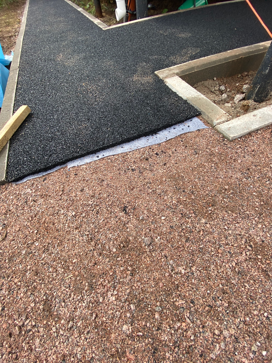 А лето 2022 года было посвящено устройству дорожек, которые мы сделали из резиновой крошки, и финишному покрытию площадки перед домом (каменная крошка).