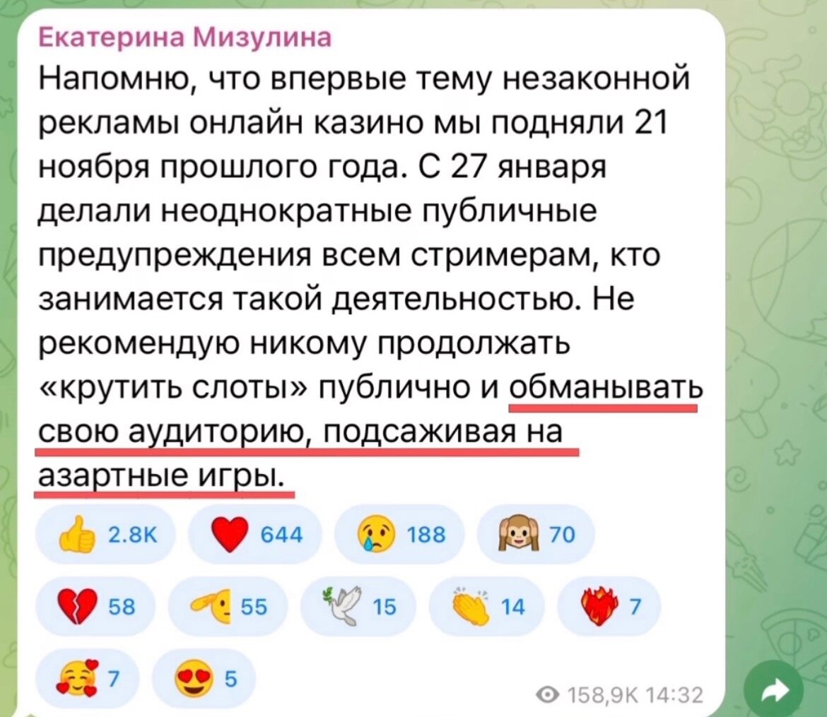 Егор Крид подал иск в суд о защите чести, достоинства и деловой репутации. Певец, блогер, наставник шоу "Голос" и стример, который рекламирует онлайн казино и "обманывает свою аудиторию, подсаживая на азартные игры" - Екатерина Мизулина. Собственно по этому за него взялись власти, а именно Екатерина Мизулина глава лиги безопасности интернета. Егора задела именно это фраза и в суде он решил защитить свою честь. По её инициативе кстати обвиняли Моргенштерна на предмет пропаганды наркотиков в песне. Не известно выиграет ли суд Егор, но Екатерина утверждает, что скоро начнутся проверки и других звезд и блогеров, по налогам в том числе. "Там большой список. И Литвинов и Гусейн Гасанов. При таких колоссальных оборотах денежных средств, миллиарды рублей... Были, настолько жадные, чтобы не платить налоги."- высказалась Екатерина Мизулина.