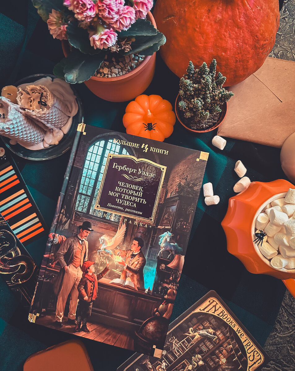 «Человек, который мог творить чудеса» Герберт Уэллс « - Послушайте, мистер Бимиш, - сказал мистер Фотерингей, - давайте-кв разберёмся, что такое чудо. Это нечто противоречащее естественному ходу вещей, творимое усилием воли….» Почти тысяча страниц причудливого калейдоскопа из 78 повестей и рассказов, написанных автором в разное время . Волшебные, странные и страшные, обыденные и фантастические, несерьезные и драматичные. Тут художник, отдаёт душу за вдохновение; амфибии, хотят выжить другие формы жизни; наследники избавляются от своих родственников; растения пьют кровь; клад с сокровищами и многое другое…. Это сборник, где стираются границы между реальностью и воображением, сном и властью опиумного дыма. Признаться, я всегда была склонна читать рассказы и повести в сборниках по порядку. Но какой же был кайф читать эти небольшие истории в разнобой, ориентируясь на наличие времени и настроение. Даже оставила несколько штук на сладкое, потому что не хочу расставаться с книгой. Обо