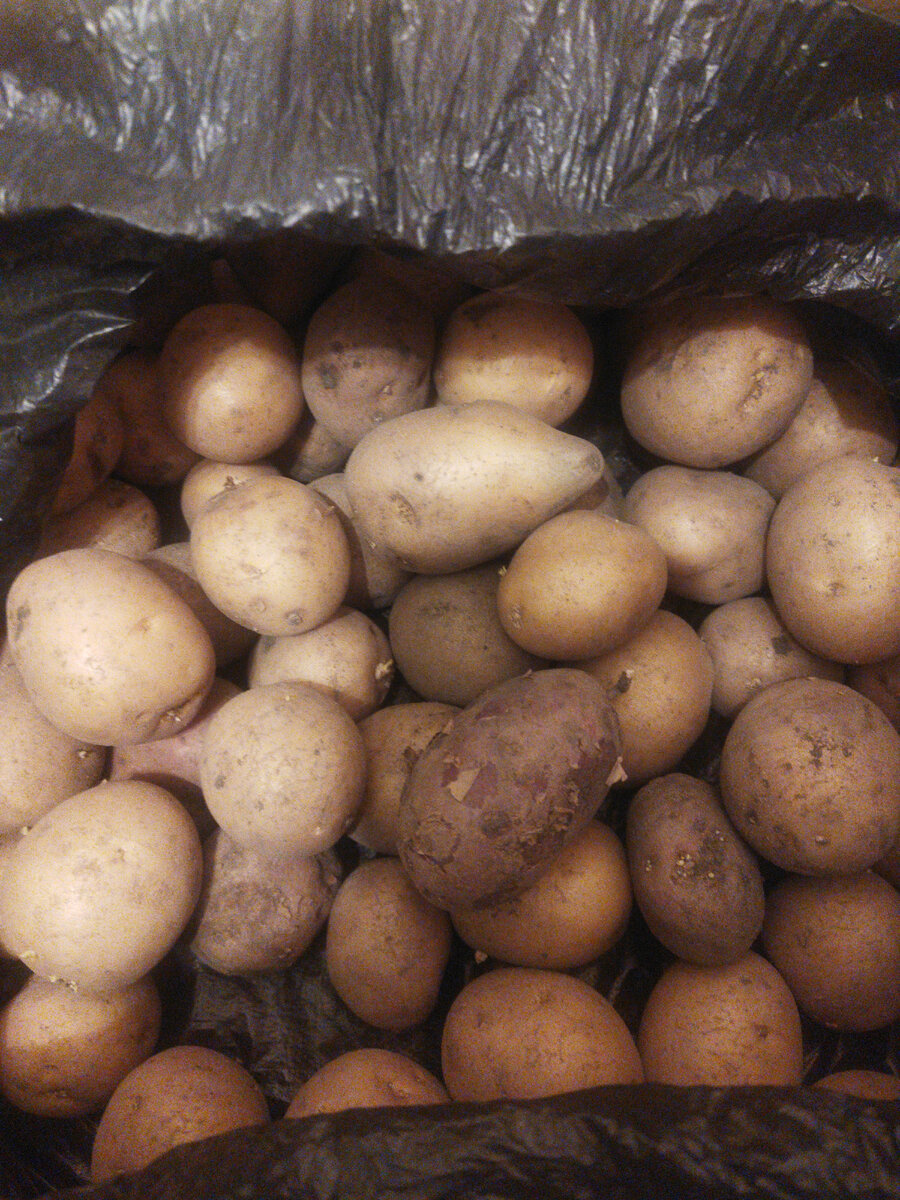 - Во-первых, это, конечно же картофель. У нас он хранится в кессоне гаража. Тот картофель, что для еды, мы предварительно просушиваем в темном месте, что бы не зазеленел от солнца и храним в мешках. Тот, что на семена, отбираем еще при выкопке и сушим и зеленим на солнце перед тем как убрать на хранение. Наш картофель отлично хранится в гараже где-то до февраля-марта, потом начинает постепенно прорастать.