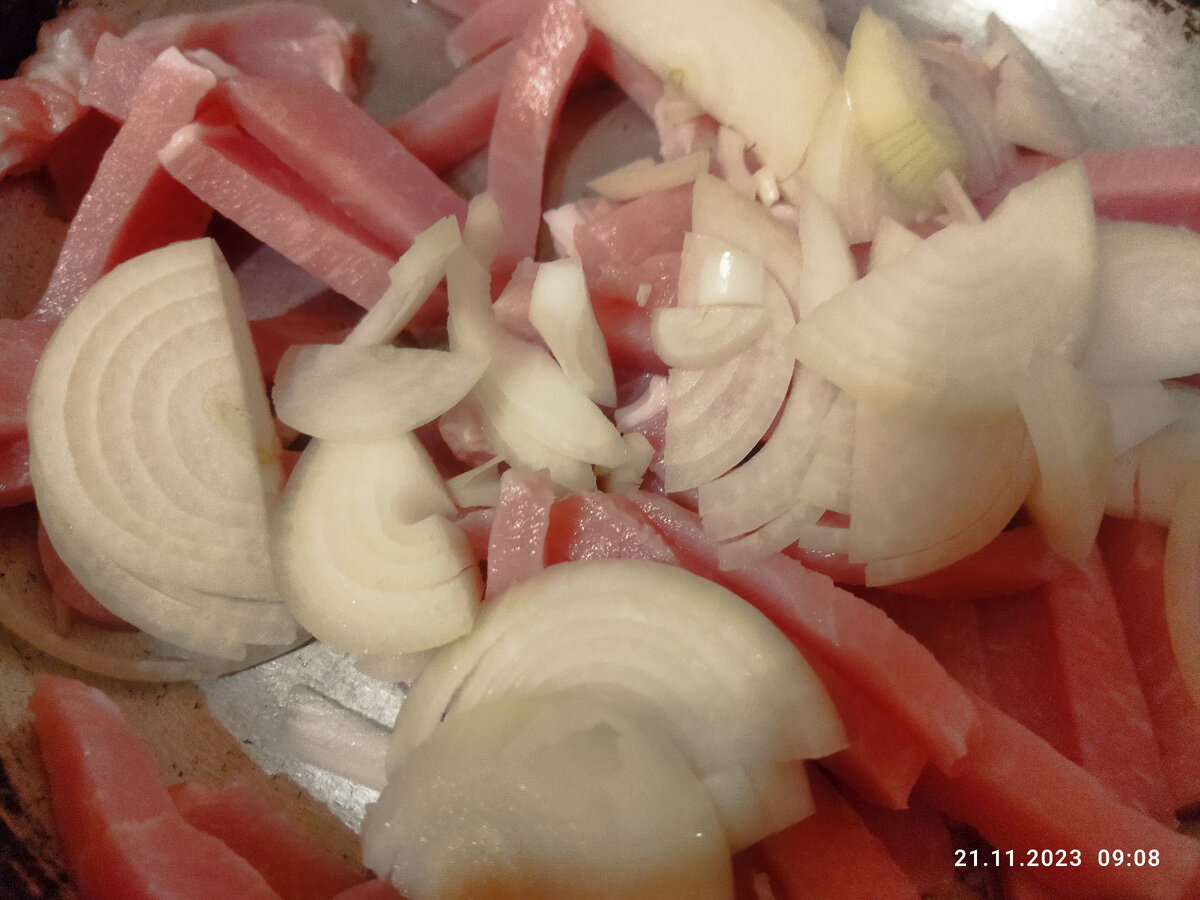 На супер рецепт не претендую, жареное мясо с луком уже вкусно.🥩🧅