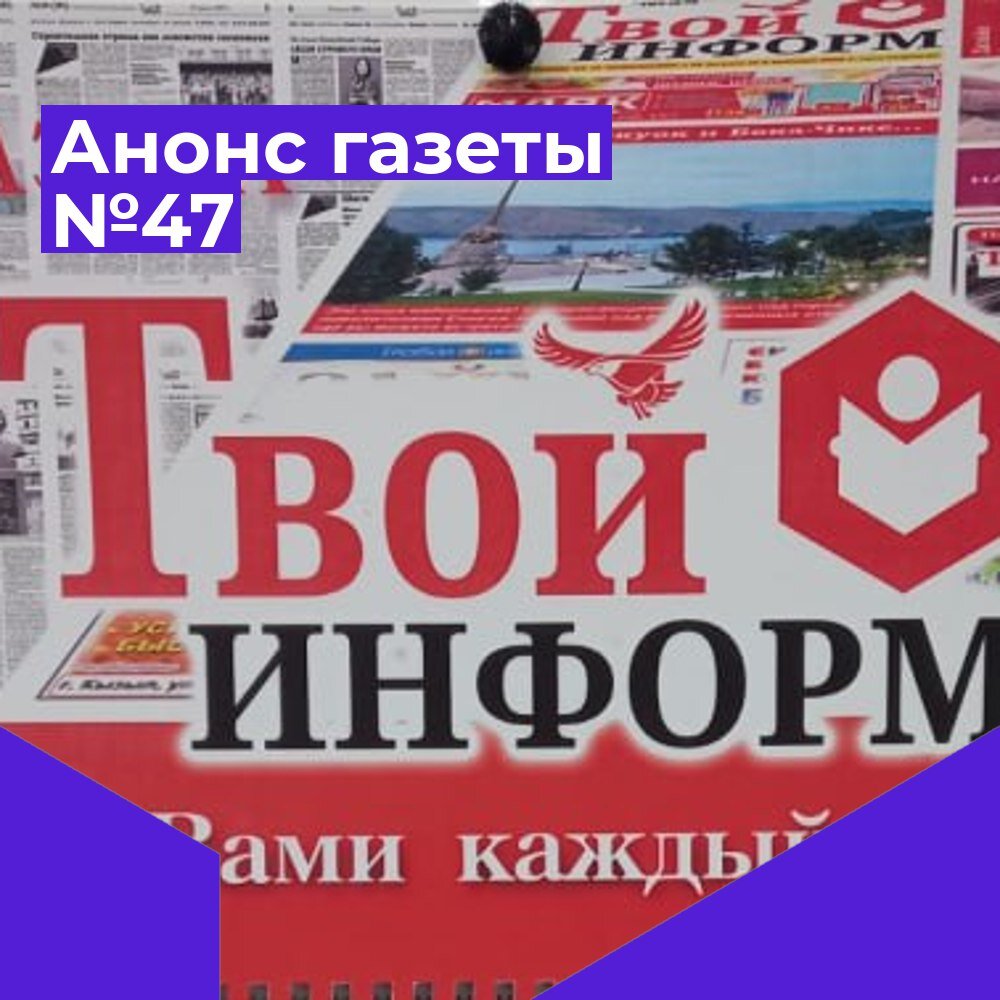 - Бабка в Шляпке на тропе исследований: какая своя продукция есть в Туве? - Как добывают золото на прииске Эми. - Поиски упавшей с моста девочки продолжаются. - В Туве откроют убойные цеха. - И внутри каждого номера читайте газету «АВА»! А также новости, актуальные материалы, гороскоп, календарь стрижек на неделю, объявления, телепрограмма, огромное количество частных объявлений и рекламы. Спрашивайте в торговых точках города, магазинах «БАТОН» и почтовых отделениях города! «Твой Информ» читают все!