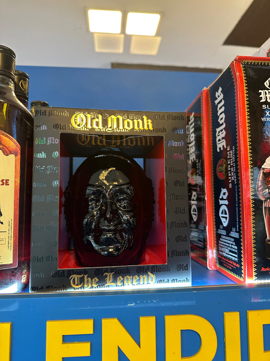 Речь пойдет о ценах в Гоа, цены в магазинах фиксированные. Да, действительно, с учетом нынешнего курса рубля к рупии, всего шестьдесят рублей, самая дешевая бутылка, но не значит, что здесь какой-то подвох. Возможно есть и другие варианты рома Олд Монк, Самый презентабельный в виде головы, не совсем удобный в перевозке, слишком много места в чемодане занимает Ценник - 550 рупий Самый ходовой, семилетней выдержки на 0.750 литра, 250 рупий, такой прикупил домой Обратите внимание на выбитую цену - 250, столько он должен стоить во всех магазинах, цена фиксированная Для ассортимента, взял еще Олд Монк 12-ти летней выдержки за 350 рупий Дома уже распробовали, приходили друзья в гости, всем понравился, на вкус уникальный что-то есть с травами, пьется легко, с запахом кофе (сам понюхал) И вот Олд Монк, справа бутылочки по 60 рупий, удобно брать на подарки Понравился вариант в пластиковой бутылке, те же 250 рупий за 0.75 л. актуально для перевозки в чемодане в багаже, точно не разобьется. С т