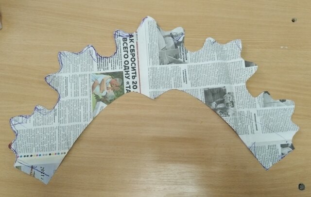 Не так уж много времени осталось до Нового года. Во многих организациях начнут готовиться театрализованные представления, шиться костюмы. Сегодня я вам расскажу, как я делала корону для костюма Зимы. 1. Выкройку нарисовала и вырезала из газеты. 2. Для основы я использовала белый изолон без фольгированной основы толщиной 3 мм. Его перламутровый оттенок, как нельзя лучше подходит к этому костюму. Сам по себе изолон, как материал не прочный, легко рвется. Поэтому я его укрепила с помощью тюля. 3. Для начала наложила тюль на выкроенную заготовку из изолона. Закрепила булавками. По всему периметру сметала швом «вперед иголку», чтобы тюль был крепко зафиксирован на изолоне. 4. Для декорирования короны я использовала серебристую синельную проволоку. 5. Отрезаем тюль по контуру короны. Проволоку пришила по контуру швом «через край». 6. Центр короны я украсила снежинкой из этой же проволоки. Сначала так. 7. Показалось слишком просто. Согнула еще такую заготовку. 8. Закрепила ее булавками, чтобы