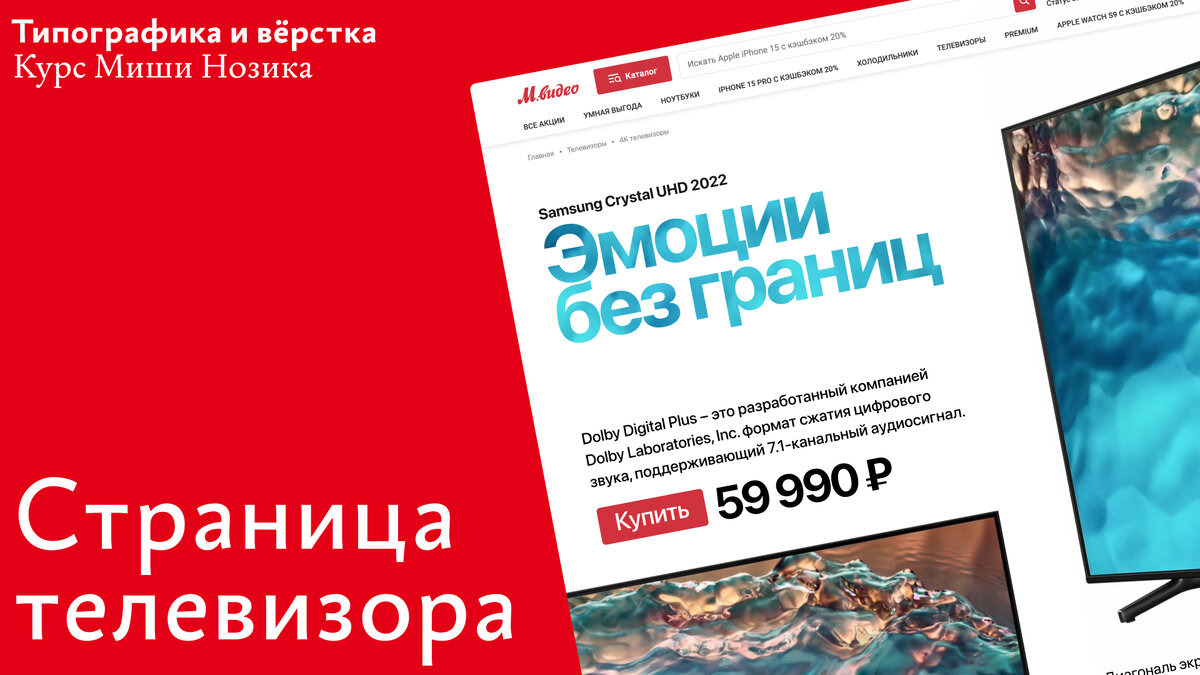 Миша Нозик записал фрагмент курса «Типографика и вёрстка», в котором разбирает работу участника: чинит заголовок, усиливает контраст вертикальных расстояний, настраивает чередование ритма, уменьшает количество стилей.