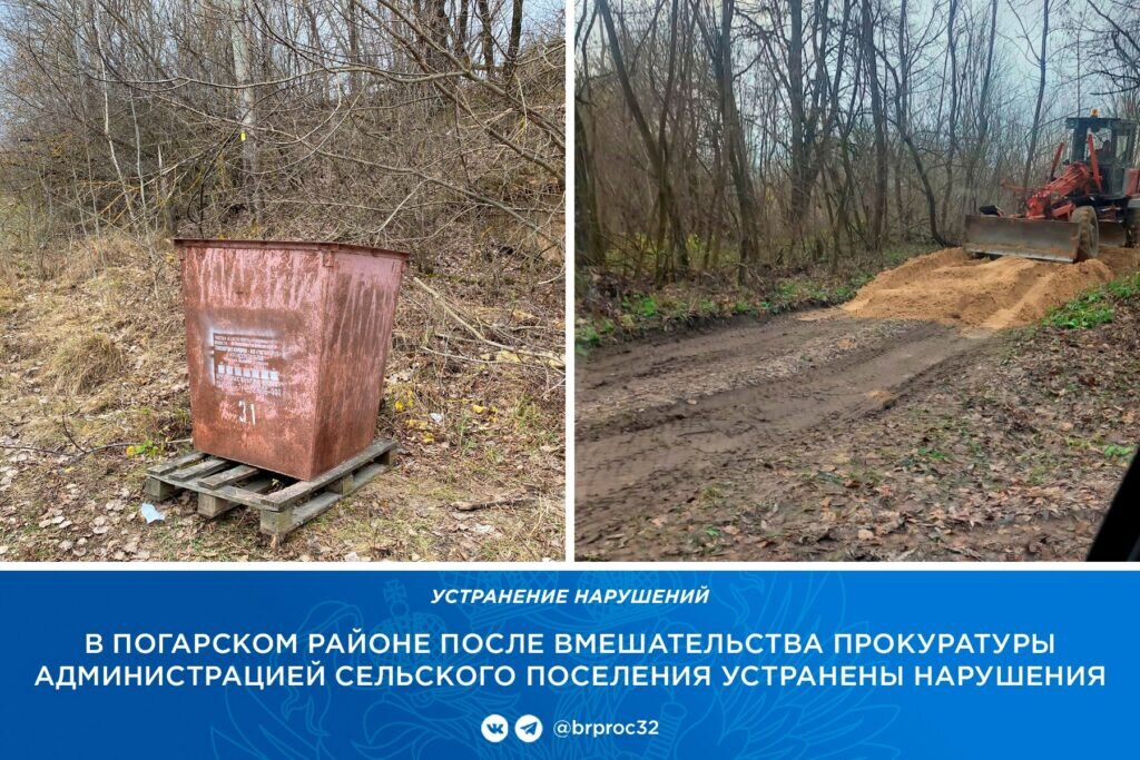 Прокуратура Погарского района проверила исполнение законодательства в сфере обеспечения безопасности дорожного движения и санитарно-эпидемиологического законодательства. Поводом послужила жалоба местных жителей, сообщает пресс-служба надзорного ведомства Брянской области. Установлено, что грунтовая дорога по улице Озерной в селе Балыкино не соответствует нормативным требованиям. Кроме того, не имеется ни одного контейнера для сбора отходов. В связи с этим прокуратура внесла главе администрации Посудичского сельского поселения представление. в настоящее время все нарушения устранили. В брянском селе Балыкино отремонтировали дорогу и установили мусорный контейнер