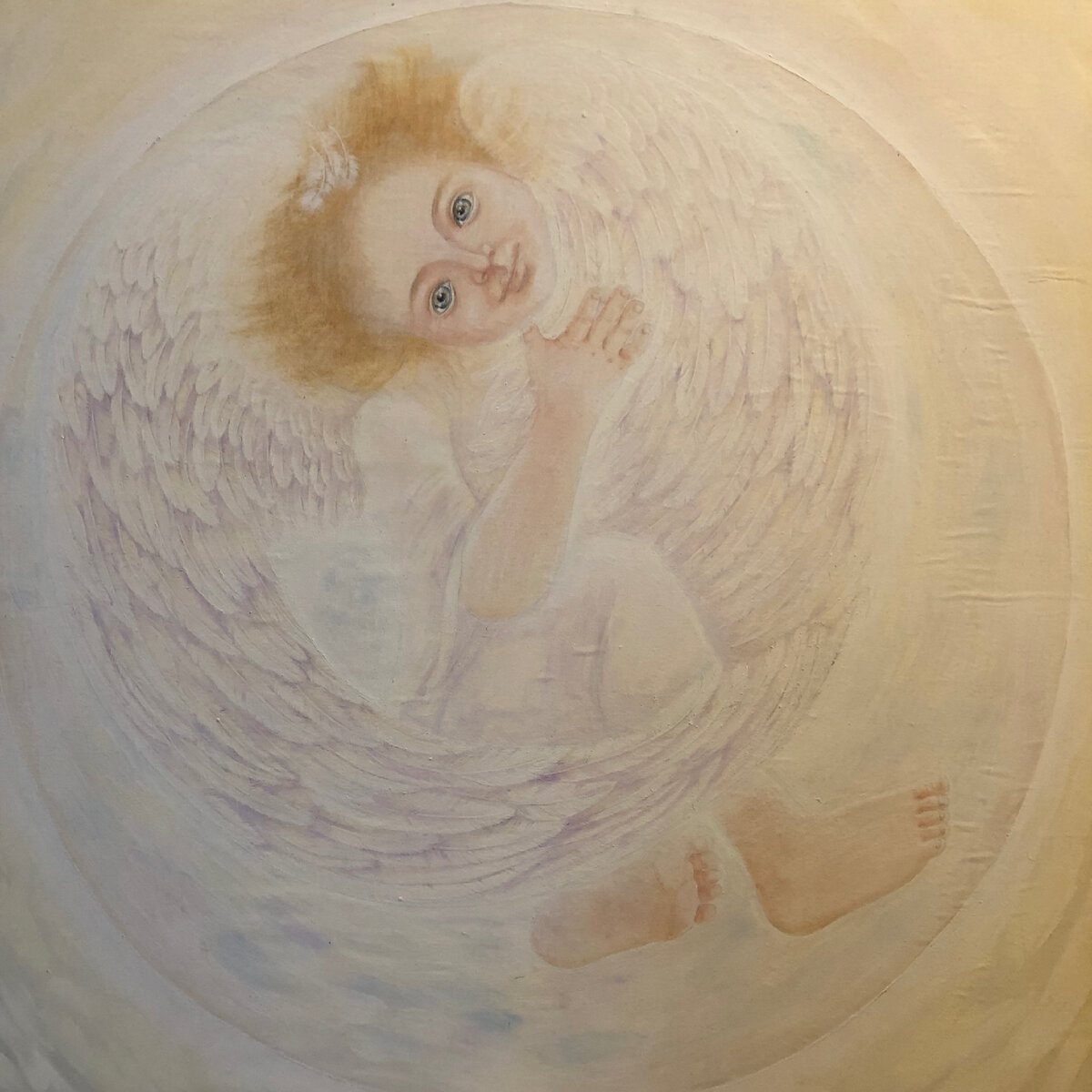 «Ангел в колыбели» - это захватывающая картина на шелке, которая передаёт удивительную красоту и нежность. На первый взгляд, эта полотно заставляет задуматься о детстве и о том, как было хорошо в маминой колыбели на руках, когда тихая песня лилась рекой и сон спускался так легко, что глаза закрывались погружая в сказку, а улыбка не оставляла никого равнодушным. Так было в детстве… На картине изображён маленький ангел, лежащий в невесомой колыбели Вселенной. Он нежно смотрит на зрителя, с выражением ласкового защитника. Ангел доверительно протягивает руку, обещая защитить ребёнка или взрослого в любой момент. Его крылья, словно изысканная прозрачная ткань, создают атмосферу нежности и безопасности. Нежные тона, использованные на картине, добавляют образу мягкость и спокойствие. Белые, голубые и фиолетовые оттенки передают небесную сферу ангела, его светлую и одухотворенную природу. В то же время, использование слабых переходов между цветами и лёгких касаний, добавляют картине почти в