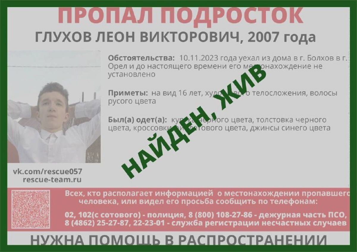 Появились подробности пропажи подростка из Орловской области, поиском которого занимались волонтеры и полиция. Об этом сообщает пресс-служба УМВД России по Орловской области. В отдел полиции 20 ноября обратилась женщина, которая сообщила о том, что её 16-летний сын несколько дней назад ушел домой и до сих пор не вернулся. Полицейские и волонтеры занялись поиском пропавшего. Его удалось отыскать. Как оказалось, подросток все время своего отсутствия находился в близлежащих областях со своими двумя друзьями. Сотрудники полиции сопроводили его в Орел и передали матери, а также провели с обоими профилактическую беседу. В отношении женщины сотрудниками ПДН ОМВД России по Болховскому району составлен протокол о «неисполнении родителями или иными законными представителями несовершеннолетних обязанностей по содержанию и воспитанию несовершеннолетних» (ст. 5.35 КоАП РФ).