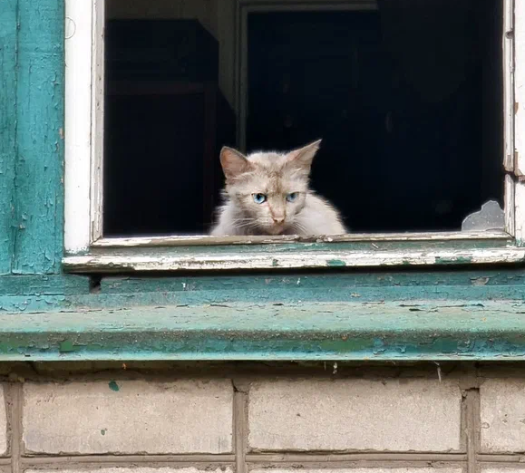 Предыдущая статья - ЗДЕСЬ Продолжаю. Раздав гуманитарную помощь и корм по некоторым адресам в Кременной, рассредоточились по другим районам. Мы с Юлей решили посетить бывшее здание медицинского колледжа, где однажды увидели голубоглазого котика (писала ЗДЕСЬ). 👇 Мы когда в следующий раз были в Кременной - приезжали с котоловкой, надеясь поймать бедолагу, но его уже не видели. И стоящие рядом на посту бойцы тоже сказали, что не видели никого в том здании. Писала - ЗДЕСЬ. И вот мы снова у этого здания, но произошли изменения - дверь, которая была всегда открыта, теперь закрыта... Пошли в подвал - там была собачка в прошлый раз: Но дверь в подвал тоже была закрыта. Причём, на ключ... Мы до этого общались с ребятами на посту неподалёку (подарки им вручили заодно) - они сказали, что собаку тут видят и даже подкармливают.... Но не могли же её запертой в подвале держать??? Мы с Юлей обошли дом с другой стороны... НЕ очень эстетично там: помо