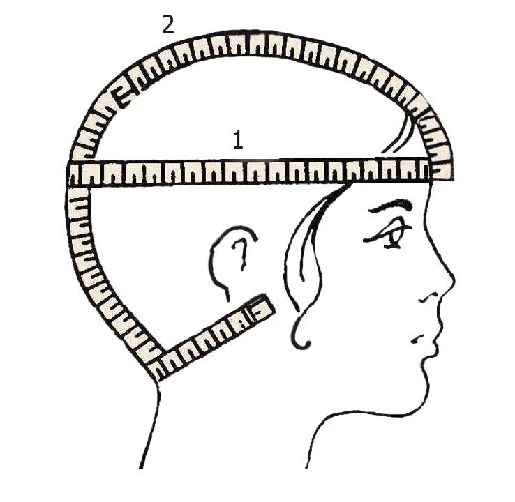 Летняя панамка раскладушка из советского прошлого – хороший вариант головного убора для детей. Такая панамка подходит как девочкам, так и мальчикам. Чтобы отлёт панамки не заминался, можно внутрь вставить толстую леску. Можно сделать отделку вьюнком, проклеить дублерином или простегать . Снимаем мерки 1 - Окружность головы (ОГ). Измеряется вокруг головы в самом широком её месте. Ориентиром в области лба служить место, где обычно начинается шапочка (кто-то носит шапку над бровями, кто-то от середины лба, а кто-то над чёлкой). 2 - Глубина шапки (ГШ). Измеряется от лба, где обычно начинается шапка до границы шеи и роста волос. 3 - Глубина шапки с боку. Измеряется от мочки одного уха до конца мочки второго уха через макушку. Построение чертежа выкройки. Мерки взяты для образца, вы же используйте свои цифры. ОГ – 49 см. ГШ – 33 см. По данным меркам сделаем выкройку - основу. Отступите от верхнего края бумаги 8 – 10 см. С левой стороны начертите прямой угол с вершиной в точке А. От точки А в