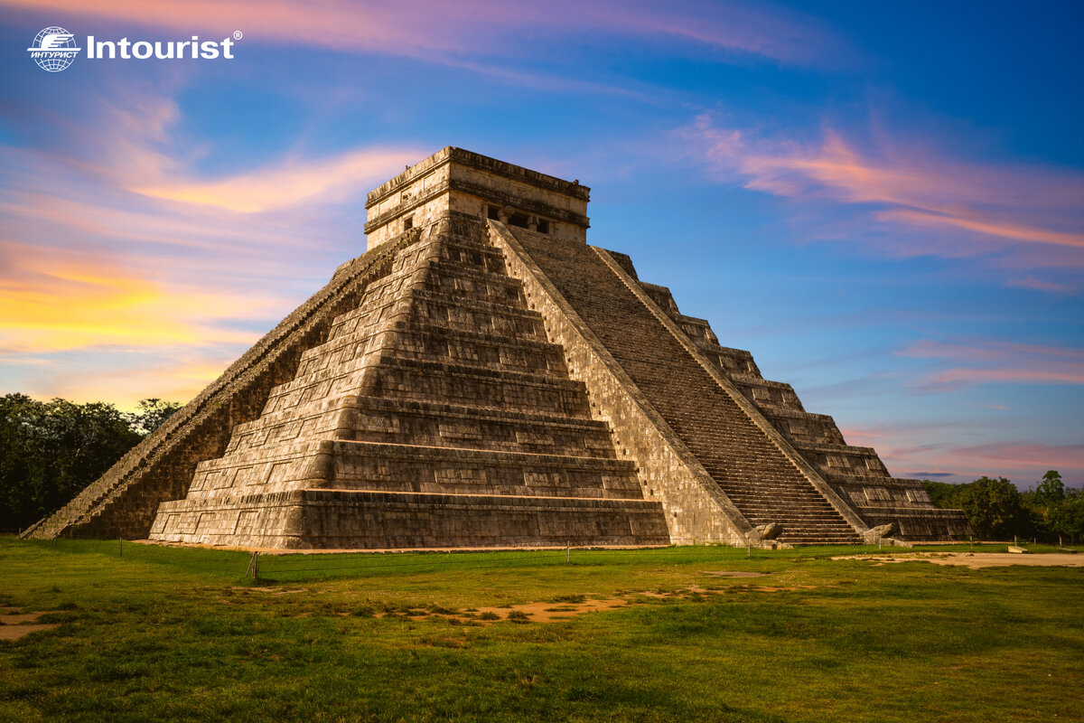 #интурист_открытия Сегодня кратко расскажем о храме Кукулькана или Эль-Кастильо в Мексике. А в комментариях пишите, съездили бы туда? Это самая узнаваемая достопримечательность, которую можно увидеть на снимках и открытках Мексики. Кукулькан — это пернатое змеевое божество. В течение весны (март 20-е) и осеннего равноденствия (21 сентября) пирамида отбрасывает тень вдоль лестницы, которая похожа на змею, ползущую вниз или вверх здания. Была построена примерно между 11-м и 13-м веками и достигает 24 метров в высоту. Строители храма заложили календарь майя в общую архитектуру здания. Четыре лестницы на всех четырёх сторонах пирамиды насчитывают 91 ступеней каждая. Если подсчитать все ступени и добавить последнюю платформу (на которой стоит храм), то получится ровно 365, то есть количество дней в году. Также девять уровней пирамиды изображают девять уровней подземного мира индейцев майя. Лестница разделяет 18 ярусов на каждой стороне. В календаре майя было 18 месяцев (винал). Напоминаем,