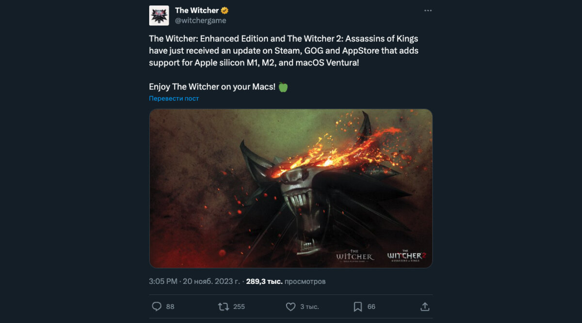 Студия CD Projekt Red сообщила в социальных сетях о том, что игры The Witcher: Enhanced Edition и The Witcher 2: Assassins of Kings получили поддержку чипов Apple Silicon. Обновлённые версии можно скачать в Steam, GOG и App Store.