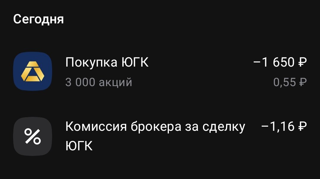 Доброго времени суток уважаемые подписчики канала Зауральский инвестор. Сегодня у меня самое ожидаемое событие - это IPO ЮГК. Как и ожидалось, осыпали малость акций. Просил на 12 тысяч, а дали только на 1.650р по минимальной цене. Это 3.000 акций по 55 копеек. Красный брокер выдал менее 15% от заявки. Маловато будет. Всем не хватило и цена при открытии торгов по акции пошла вверх. На момент написания статьи +5%. Надеюсь, что оба мои IPO в сумме выйдут в ноль. На оставшуюся сумму откупил обратно народное достояние, правда на лот меньше, чем было, зато дешевле. И на сдачу - лот Интер РАО. Стало 15 лотов на этом БС№1 Также сегодня пришли купоны самолёта на БС№2 синего брокера. На БС скопилось чуть более 900 р. Большого выбора небыло, взял Татнефти-п. Стало на этом БС 28шт. От Самолёта также пришли купоны с ИИС№1 на карту синего банка, которые я тут же ре инвестировал обратно. Продал все акции фонда ликвидность и купил 3 облигации ОФЗ 29007. На остатки опять взял акции фонда ликвидн