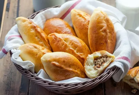 – Подошедшее тесто разделить на равные части, раскатать каждую в лепешку толщиной около 5 мм. Положить на каждую лепешку фарш, защипнуть края теста и сформировать пирожок.