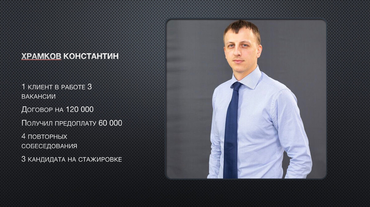 Храмков Константин. Титулованный спортсмен в прошлом. Мастер спорта международного класса по гребле. Чемпион первенства мира. В октябре я взял его на подготовку новой профессии РЕКРУТЕР. Результаты которые вы видите на фото за 20 дней. Он еще учится. На днях Костя взял еще контракт на найм 2х менеджеров (еще 120.000₽) в торговую компанию в Москве. Он находится в Ростове, а нанимает для Москвы и Волгограда. Костя уделяет работе 3 часа в день, а после проводит время с женой и ребенком. В целом 3 часа работы в день и 240.000₽ в полтора месяц не плохо, правда? И это только начало. Только 48й день обучения и практики. С уважением, Сергей Шушин