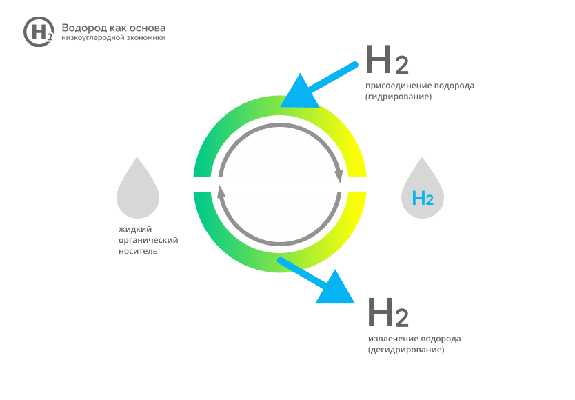 Изображение: Схема процесса гидрирования и дегидрирования водорода в составе жидких органических носителей / Пресс-служба Центра НТИ