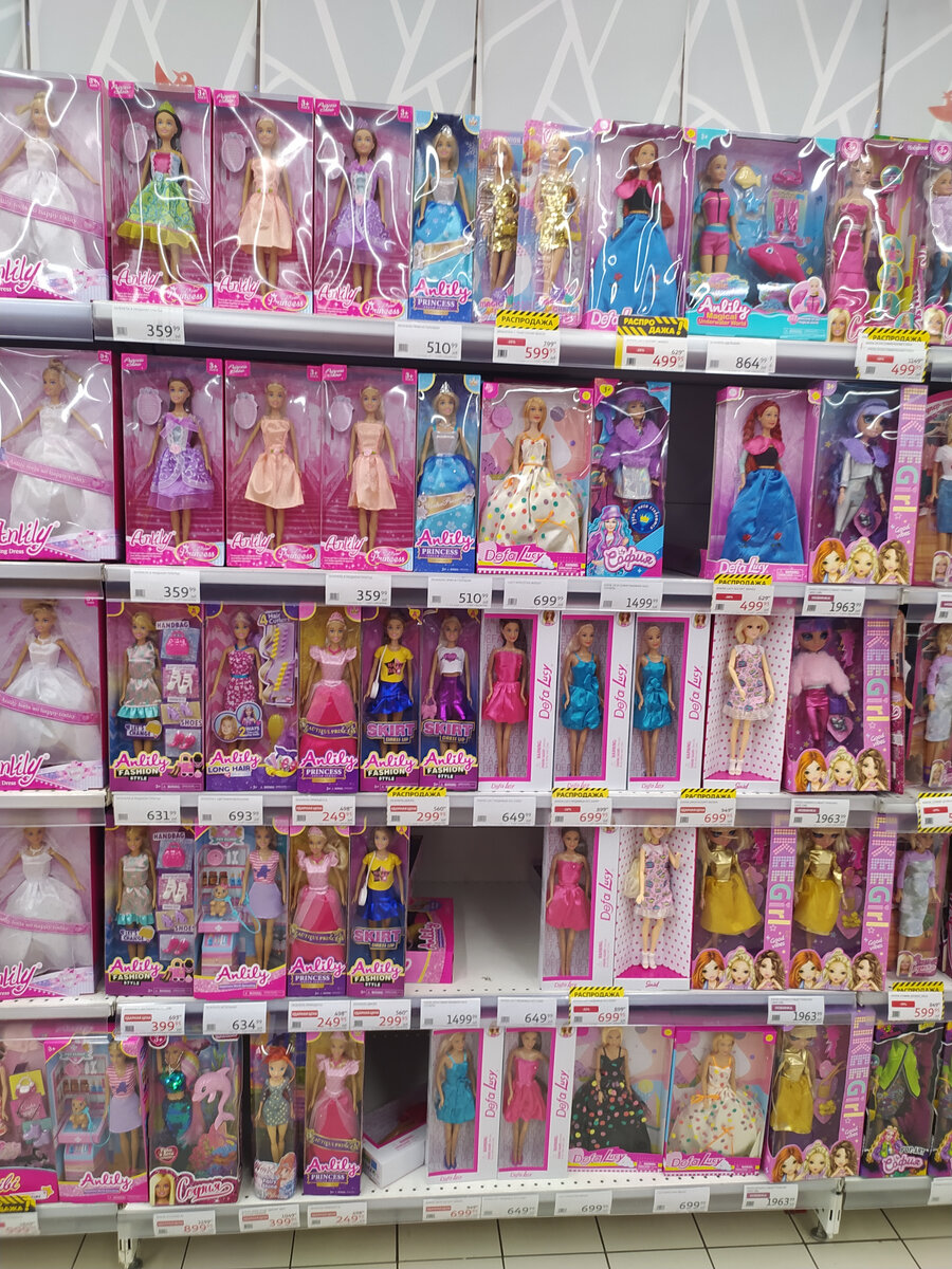 Ашан-Тройка, Москва, Красносельская. Ассортимент несколько разочаровал отсутствием фирменных игрушек, зато есть много дешевого (но надо ли оно нам?...) Подделки под РХ № 1. Всего чуть дороже 1000, выглядит интересно, думаю, не купить ли ради обзора. На коробке есть ещё третий вид, но её не было Подделки под РХ №2 выглядят совсем грустно, особенно с ценником почти в 2000 р. Oh My Top выглядят прикольно, но не за 2700 р. Вот эта куколка ещё показалась миленькой Металлическая машинка по 99 р Интересные светящиеся фонарики с фигурками внутри Олень больше куклы! И некукольное, но прикольное! Коробка с печеньками И ОГРОМНАЯ коробка с печеньками, почти на кило