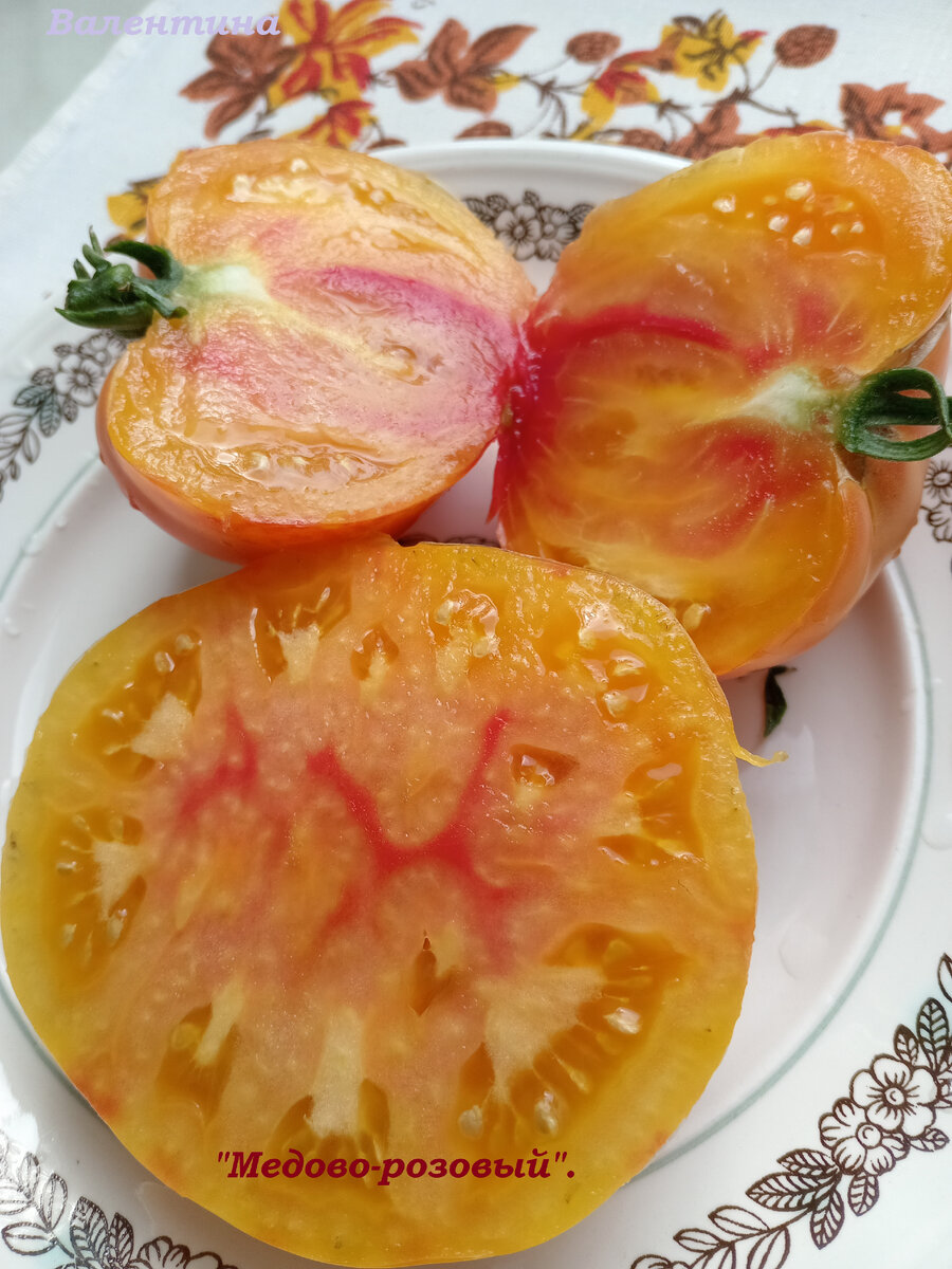 Здравствуйте друзья! Здравствуйте гости канала! Возвращаюсь к томатам. В Петербурге всё время сумрачно. Хочется чего-нибудь солнечного, яркого. В этом сезоне сажала сорт томата сибирской селекции «Медово-розовый». В неотапливаемой теплице, в теневом месте. Таким сортам нравится солнышко, но уж, что досталось. Этот сорт не впервые в моём огороде. Был испытан в открытом грунте. Такой высоты, как в теплице не набрал, всего 150 см. Однако, урожайность была хорошей, а плоды по 300г. От производителя: «Высокая урожайность сорта сохраняется даже при неблагоприятных климатических условиях». Семена урожая - 2019г. Посеяла - 6.03. Всходы - 14.03. Первый спелый плод 29.07. Хороший сорт! Отличный сорт! Урожайный сорт! Вкусные плоды! Этот томат можно сажать, хоть, каждый сезон. Но огромное желание посмотреть на новые сорта, огороднику не преодолеть! Поэтому сажаю этот томат периодически. Как многие «сибиряки», имеет толстые, надёжные стволы, широкие листья. Рост растения неограничен. Плоды – плоск