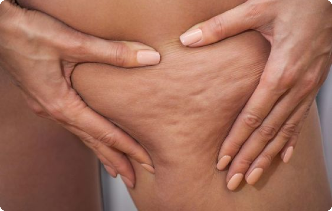 Целлюлит - это состояние, при котором жировые клетки под кожей начинают выдаваться вверх, проникая сквозь соединительные ткани. Это создает неровности на поверхности кожи, которые могут проявляться в виде гребешков, впадин или выпуклостей. Характерная "апельсиновая корка" чаще всего встречается на бедрах, ягодицах и животе.