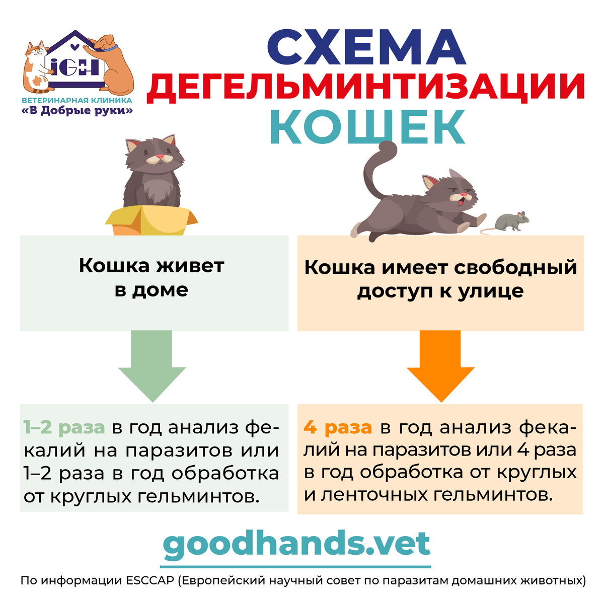 Дегельминтизацию следует проводить в зависимости от того, в какую группу риска по заражению паразитами входит ваш питомец. На слайдах памятки, подготовленные нашими специалистами.