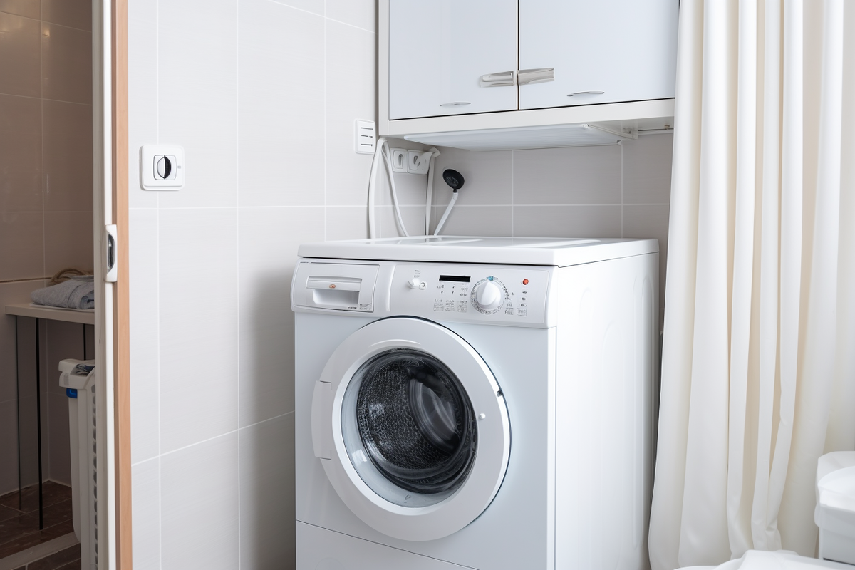 - Стиральную машину желательно подключать в отдельно выделенную розетку с заземлением и не рекомендуется подключать через удлинитель. Максимальную мощность развивает при нагреве воды ТЭНом, поэтому если провод не подходящего сечения или проводка старая то велика вероятность загорания.