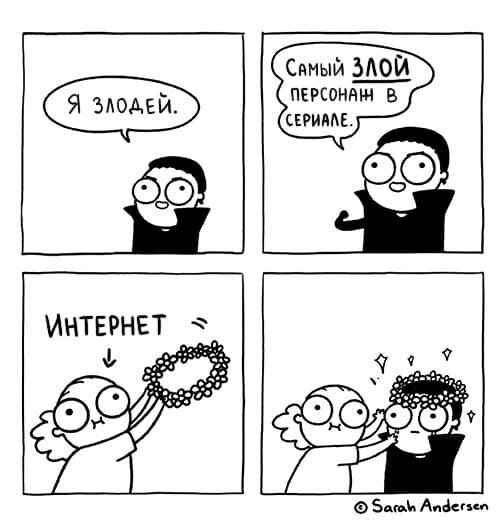 На этот пост меня натолкнула картинка ниже. Она точно описывает танатоманию, тенденцию массовой культуры, которая началась примерно с 1970-80 годов. «Писать о мрачном – хорошо!», фраза из одного руководства по написанию подростковой литературы, которая стала лозунгом целой эпохи. Зритель начал смаковать смерть во всех вариантах: фильмы и телепередачи про маньяков, убийц, оборотней, вампиров и прочую нечисть. Людям стало интересно смотреть на сцены насилия, и фильмы в духе «Восставших из ада», вариации романа «Дракула» или «Кошмаров на улице Вязов» щедро приносили необходимый контент. Конечно, кино, в котором оборотень гонится за девушкой по лесу, были и раньше. Но в заметном количестве их наштамповали именно ближе к концу 20 века.