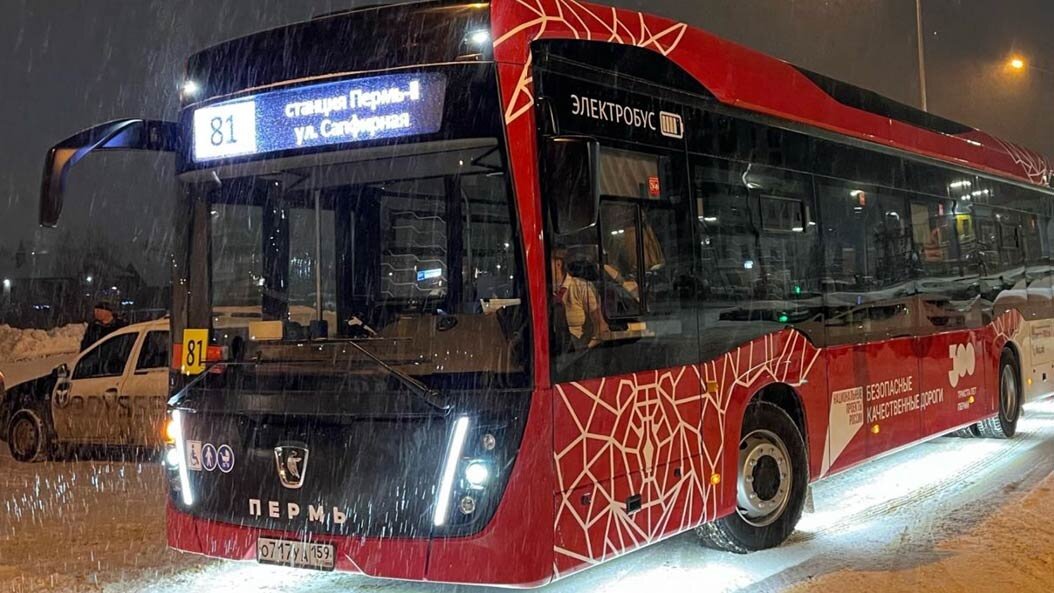 В Перми запустили новый автобусный маршрут № 81 (Улица Сапфирная — станция Пермь-2). Он соединит ЖК «Погода» с центром города. Это первый маршрут, который полностью обслуживается электробусами. Всего в Пермь поступило 16 электробусов KAMAZ-6282 вместимостью до 85 пассажиров. Они обладают возможностью ультрабыстрой зарядки. На остановке «Улица Сапфирная» смонтированы специальные зарядные станции для электробусов.