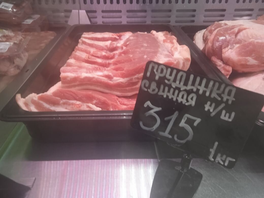 Сравним цены на мясо и мясопродукты по регионам России? Публикую цены в Твери для сравнения. На днях услышала от своей знакомой, что в Москве цены на мясо ниже, чем в тверском регионе: москвичи приезжали в гости и были шокированы ценами на курятину и говядину в наших магазинах. Из чисто женского любопытства мне стало интересно, а действительно ли это так. Вот и решила провести своеобразный опрос на тему региональных цен на мясо и мясную продукцию. Для сравнения взяла цены на свинину, так как цены на говядину КУСАЮТСЯ... Не по карману они простым российским пенсионерам. Итак, приступим к обзору цен в Твери именно на свинину. Грудинка свиная Жира мало, почти не видно. Цена – 315 рублей за килограмм. Если не ошибаюсь, то по весне она была дешевле на 100 рублей. Рёбрышки, лента. Смотрятся аппетитно. Очень хороши для запекания в духовке в фольге! Нынче их цена – 289 рублей за кило. И опять-таки были совсем недавно дешевле на 30% как минимум! Окорок свиной без кости. Обратите внимание, что н