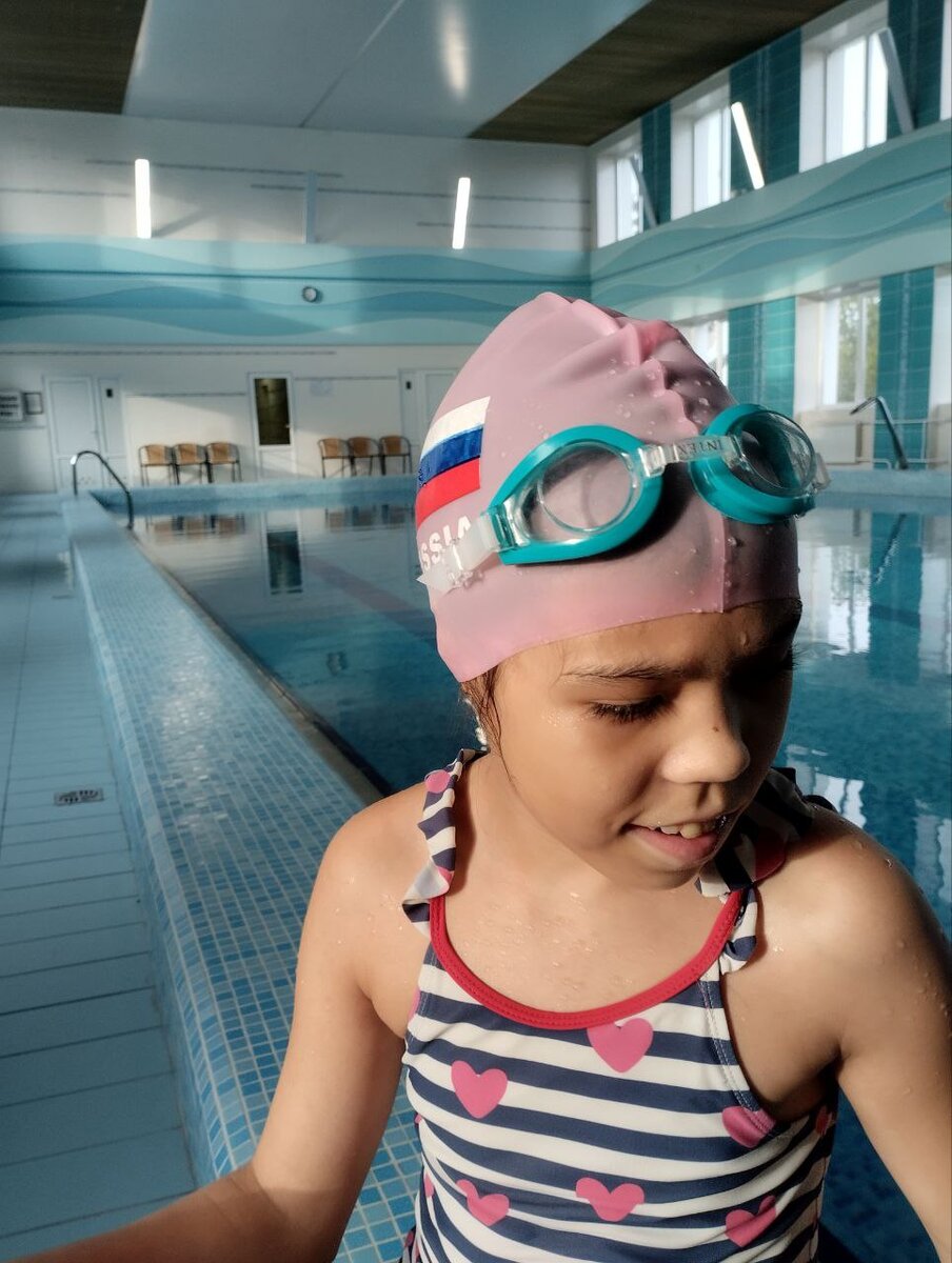 Доброго дня! Как и обещала, расскажу о том, как Алиса начала ходить на плавание. В октябре месяце в одном из чатов мама выложила объявление, что у их тренера по плаванию осталось несколько мест. Алиса очень любит плавать, сама научилась нырять и держаться на воде и меня это объявление заинтересовало. В Анапе есть 2 бассейна, в которых тренеры занимаются с детьми ОВЗ, но они очень небольшие и детям постарше в них уже не так комфортно. В этом же объявлении говорилось, что занятия проходят в санатории Урал. У них три бассейна (2 под открытым воздухом, один из которых подогревается и работает и зимой, второй летний и третий крытый). Занятия проходят в крытом бассейне, его длина 25 метров. И мы в этом бассейне уже однажды бывали, когда только переехали в Анапу мы праздновали там день рождения Алисы. Я запомнила, что дочери там понравилось, да и у меня остались приятные впечатления. Поговорив с тренером по телефону мы решили попробовать и оплатили первые 10 занятий. Получилось 8000 руб трене