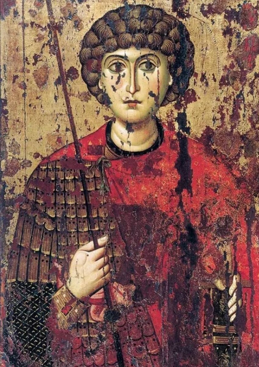 Его почитание на Руси началось с глубокой древности и отражало общехристианское отношение к этому святому. В Западной Европе под его именем шли Крестовые походы, он был покровителем королевских домов, его мощи имели огромную ценность и передавались как величайшая святыня. На Руси культ святого Георгия существовал в двух формах: культ великомученика и культ воина, победоносца. Особую популярность и распространение получил сюжет, где Георгий спасает дочь царя-язычника из пасти дракона (Чудо Георгия о Змии) – этот сюжет лег в основу наиболее распространенной иконографии святого Георгия, представляющей Георгия как победителя диавола. С именем Георгия связаны уникальные памятники – Георгиевский храм Старой Ладоги (в нем есть интереснейшая фреска, где «укрощенного» Георгием змея тащат на верёвке), Георгиевский собор Юрьева монастыря в Новгороде, Георгиевский собор в Юрьеве-Польском – последний домонгольский храм Руси. По его образцу был построен первый каменный храм на кремлевском холме в Мо