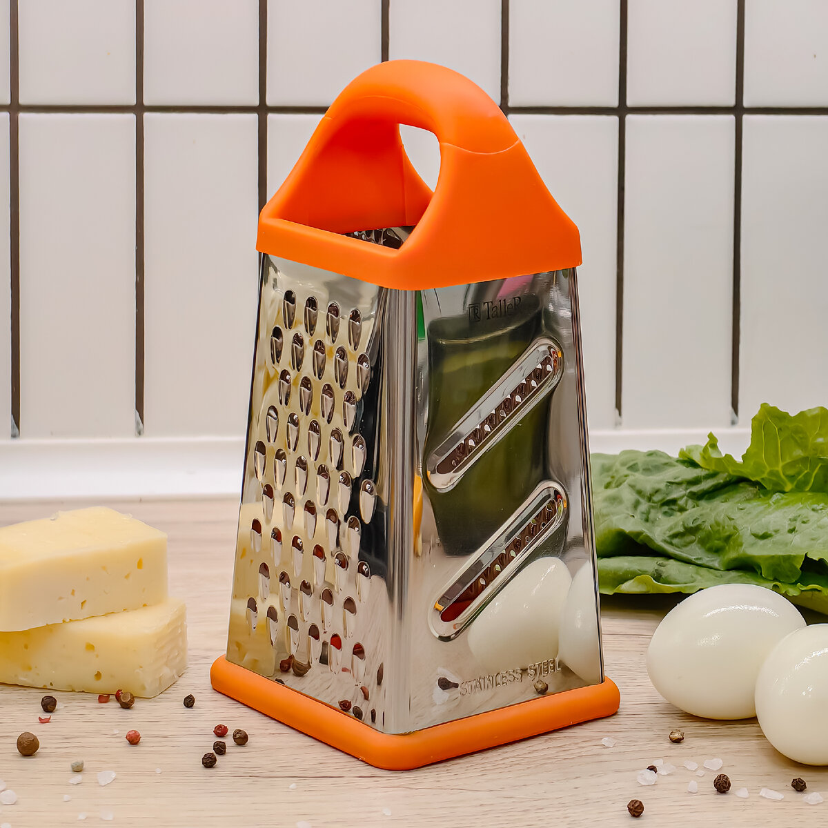Терка TR-21911 Рэми 4 лезвия Терка позволит быстро и легко нарезать овощи, фрукты, сыр и другие продукты на мелкие кусочки, что сэкономит ваше время при приготовлении пищи. 🔸Размеры: -высота: 20,3 см, -основание: 10,3 х 10,3 см, -толщина: 0,3 мм. 🔸Материал: высококачественная нержавеющая сталь марки AISI 430. 🔸4 вида лезвий: -крупная терка, -средняя терка, -мелкая терка, -шинковка. 🔸Ручка удобной формы с силиконовой вставкой не выскальзывает из рук даже при намокании. 🔸Нескользящий силиконовый протектор на основании предотвращает скольжение во время использования и защищает поверхность от повреждений. 🔸Большая площадь режущей поверхности. 🔸Специальная усиленная конструкция каркаса. 🔸Поверхность внешняя — зеркальная. ❕Пригодна для мойки в посудомоечной машине.