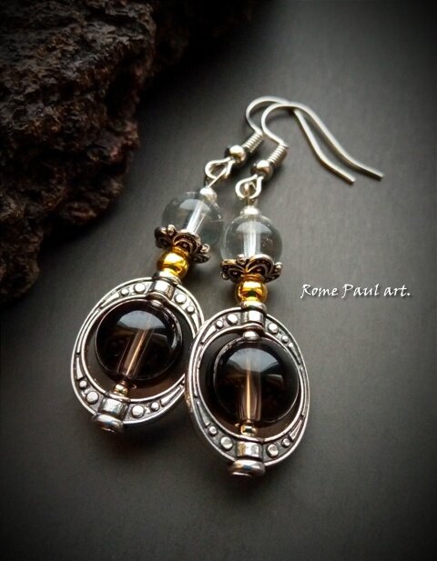 В дымке-невидимке Выплыл месяц вешний, Цвет садовый дышит Яблонью, черешней. Так и льнет, целуя Тайно и нескромно. И тебе не грустно? И тебе не томно?.. (А.Фет) МАТЕРИАЛЫ: натуральный раухтопаз, природный горный хрусталь, посеребренная фурнитура Длина серьги: 65 мм ...Раухтопаз - камень спокойствия и медитативного созерцания, он успокаивает слишком эмоциональных людей, нейтрализует злобу, снимает раздражительность и стрессы, избавляет от ревности, обид и гордыни, помогает выйти из депрессивного состояния, ослабляет алкогольную и наркотическую зависимости. Уравновешивает сексуальную энергию. ...Подернутый туманной дымкой, похожий на сгусток золотистого тумана или, напротив, непроницаемый до черноты, раухтопаз получил свое наименование вследствие ошибки средневековых геммологов. Сегодня эта широко распространенная разновидность кварцев применяется как ювелирами, так и магами, сочетая в себе красоту самоцветов и мощную магию стихий. Согласно классификации минералов Бауэра — Ферсмана, про