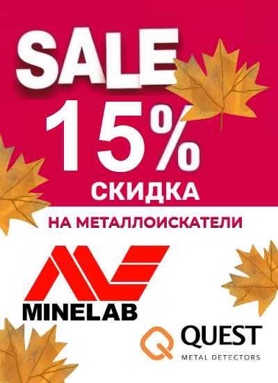 Камрады! Только 2 дня до вечера 25 ноября скидка на металлоискатели Minelab и Quest - 15%! Подробности: Скидка до 15% действует на металлоискатели Minelab и Quest. (А также бонусы для участников группы и бесплатная доставка).