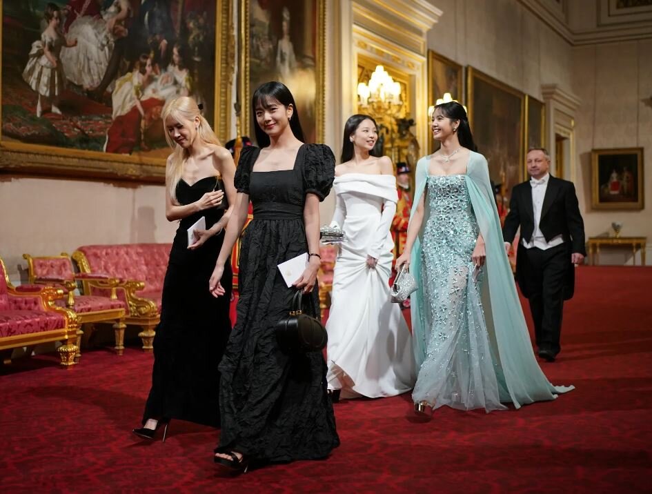 Государственный визит президента Южной Кореи Юн Сук Ель в Лондон породил одно из самых примечательных событий международной поп-культуры за последнее время: выступление K-Pop группы Blackpink в Букингемском дворце. С тех пор, как Spice Girls появились в Букингемском дворце в 1997 году, девичья группа такого масштаба не посещала нынешнего короля. Отмечая вклад Кореи в британскую культуру, включая Squid Games, BTS и фильмографию Пон Чжун Хо, он похвалил K-Pop группу за их защиту окружающей среды. Я аплодирую Дженни, Джису, Лизе и Розе, более известным под общим названием Blackpink, за их роль в донесении идеи экологической устойчивости до мировой аудитории в качестве послов председательства Великобритании на КС 26, а позже в качестве защитников Целей устойчивого развития ООН. Коллеги по группе отметили это знаменательное событие своим собственным взглядом на королевскую моду. Джису выбрала черное текстурированное платье с пышными рукавами из коллекции Christian Dior resort 2024, вдохн