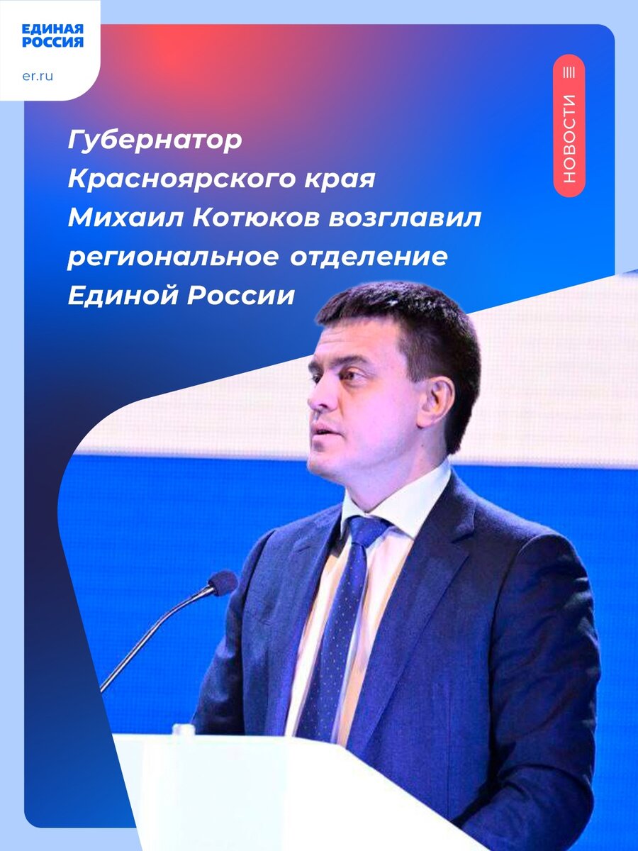 Новым руководителем Красноярского регионального отделения Единой России стал губернатор региона Михаил Котюков. Его избрали на партийной конференции. Михаил Котюков возглавляет регион с апреля 2023 года «Он работает в тесной связке с партией. На выборах он возглавил списки Единой России в городской совет. Михаил Михайлович делом доказал, что способен решать самые сложные задачи, в том числе электоральные. На встрече с Дмитрием Медведевым он обсудил планы дальнейшей работы, в том числе, по строительству метро и газификации региона. Мы ему поможем выполнить прямое поручение Президента», - сказал секретарь Генсовета партии Андрей Турчак.