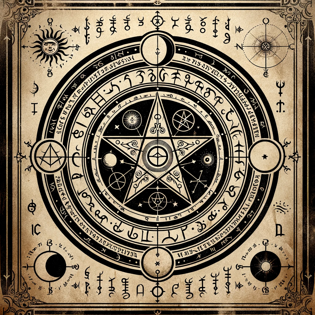 Данный пентакль "Clavis Fortunae", или "Ключ Удачи", является мощным инструментом в арсенале практикующего мага. Его начертаиние глубоко символично и каждый элемент занимает свое особое место в иерархии оккультных знаний. В центре пентакля располагается пентаграмма, окруженная тремя концентрическими кругами. Пентаграмма — это древний символ защиты и баланса, представляющий пять элементов: Землю, Воздух, Огонь, Воду и Дух. Первый круг содержит алхимические символы планет: ☉ Солнца, ☽ Луны, ♂ Марса, ♀ Венеры, ☿ Меркурия, ♃ Юпитера и ♄ Сатурна. Эти планетарные символы представляют собой магические силы, которые влияют на различные аспекты жизни и могут быть призваны для усиления различных намерений. Второй круг включает руны и символы, которые усиливают связь пентакля с духовными энергиями и могут служить для вызова или управления этими энергиями. Третий круг состоит из загадочных письмен, которые, как считается, содержат закодированные сообщения и формулы, доступные только посвященным в