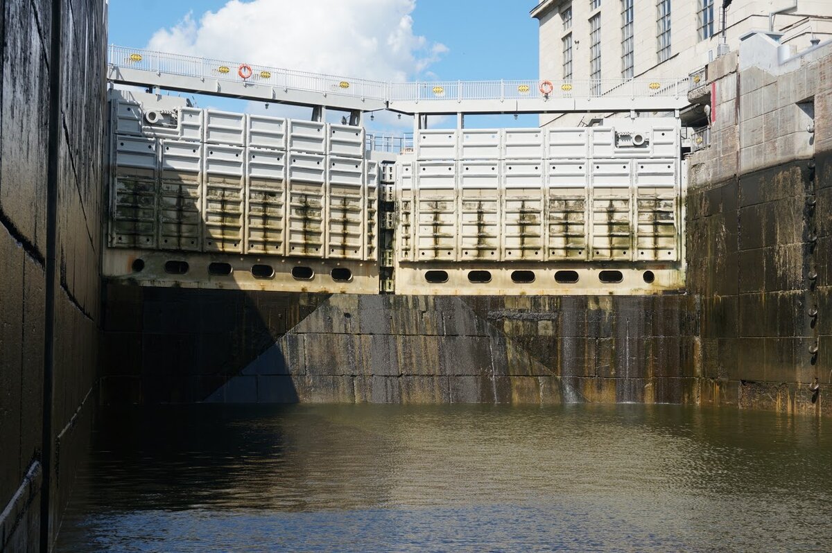 Создавая водохранилища, гидроэлектростанции улучшают условия судоходства – значительно увеличиваются глубины, затапливаются мешающие проходу судов пороги и перекаты. В то же время, плотина является препятствием для прохода судов, поэтому рядом с ними сооружают судопропускные сооружения, чаще всего – шлюзы. Как они устроены? Судоходный шлюз представляет собой прямоугольную конструкцию, состоящую из верхней головы, нижней головы и камеры. В головах шлюза располагаются ворота (в верхней голове они чаще всего плоские опускные, т.е. при открытии опускаются вниз, а в нижней голове – двустворчатые, при открытии они распахиваются).