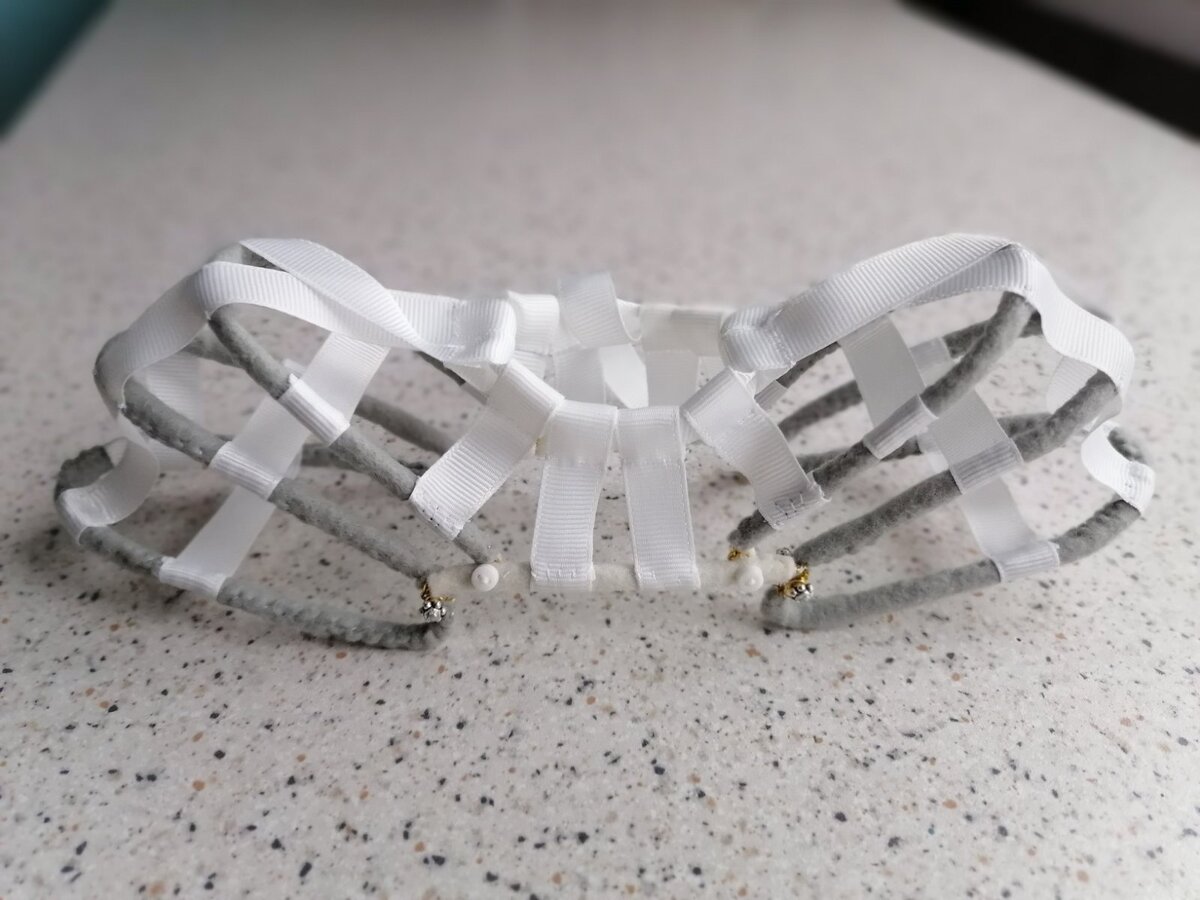 Привет, друзья! Наконец-то мне есть чем похвастаться. Я сделала панье. День у меня ушел на придумывание из чего сделать детали каркаса и как эти детали соединить между собой, чтобы они двигались и каркас все же складывался, а не был стационарным. Урааа! Мне это удалось. Смотрите сами. Так каркас выглядит в собранном виде. На кукле я его вам покажу, когда будет готова рубаха и чулки. А возможно еще и обувь. А это тот же каркас, только боковушки приподняты так, как если бы дама его сама собирала при необходимости протиснуться в узкое пространство, например, при посадке в карету. И напомню вам как выглядит такое панье в человеческом виде. Итак, из чего я сделала каркас. Из проволоки. Проволока обшита фетровыми полосками для того, чтобы не портить ткань зацепками. Каркас состоит из двух перекладин (впереди и сзади) и шести полуовалов. На концах всех деталей я делала круглогубцами дужки, за которые и крепила все детали, как показано на этой схеме: Детали двух полуовалов (с каждой стороны)