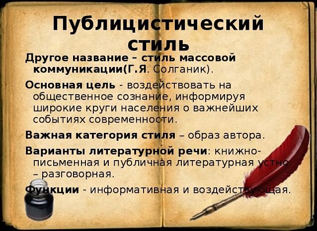 Публицистический стиль речи — это разновидность русского литературного языка, которая используется средствами массовой информации с целью воздействия на слушателей и читателей при освещении событий общественно-политической жизни.