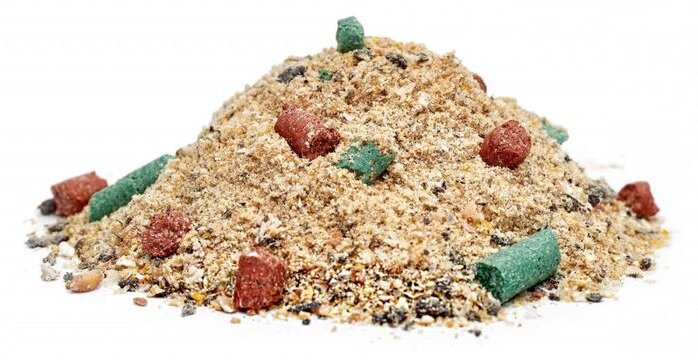 При ловле в реке прикормка быстро вымывается из кормушки и создает привлекающий рыбу след, в стоячей же воде она остается неподвижно лежать на дне, поэтому бывает довольно непривлекательной. Я использую компоненты, которые буквально взрывают прикормку. Их можно найти в ближайшем магазине. На первом месте стоят все виды шипучек. Они продаются в виде таблеток, конфеток или порошка. Особенно хороши мультивитаминные таблетки в пластиковой трубочке, которые способствуют отличному перемешиванию и очень недороги. Приготовить очень просто. Сначала беру немного смеси для стоячей воды и слегка ее увлажняю. Прикормка должна быть увлажненной настолько, чтобы она выдержала заброс кормушки, а на дне распадалась в течение нескольких секунд. Сочетанием быстрорастворимых таблеток с медленно растворимыми конфетами удается добиться бурной реакции, которая начинается сразу же при опускании в воду и длится несколько минут. Но предварительно в смесь помещаю еще несколько растертых в руках хлопьев для завтра