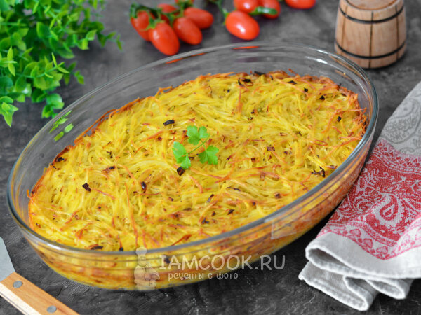 В картофеле есть крахмал и при определённом способе приготовления он становится клейким и для многих неприятным. Но в нашей запеканке такого неприятного момента не будет! В процессе приготовления поймёте почему. Очень рекомендуем приготовить эту простую, вкусную и бюджетную запеканку. Наверняка она вам понравится и вы будете готовить её часто. Картофельная запеканка из тертого картофеля Лук-порей при желании можете заменить обычным репчатым луком. 📝ПРИГОТОВЛЕНИЕ: 1. Натрите картофель на тёрке для корейской моркови. В таком случае структура и консистенция запеканки будет то что нужно. Положите к картофелю нарубленный лук, приправу, соль и майонез. 2. Перемешайте картофельную массу и переложите в форму для выпечки, предварительно смазанную маслом. 3. Запекайте запеканку при 180 градусах минут 45. Лучше всего нарезать запеканку минут через 10 после того, как достанете её из духовки. Больше фото и пояснений можете посмотреть тут: 🧾ИНГРЕДИЕНТЫ: Картофель - 1 кг Лук-порей - 80 г Приправа д