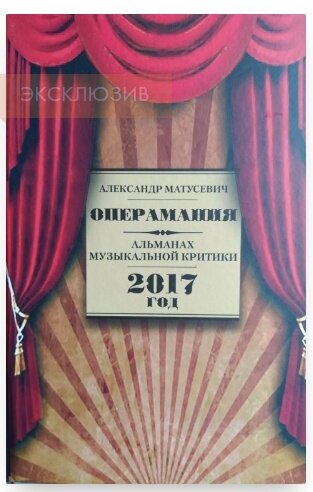 "Альманах музыкальной критики представляет собой сборник статей (рецензии,интервью, обзоры и пр.) известного московского музыкального обозревателя Александра Матусевича, освещающих музыкально-театральные события 2017 года. В них отражены актуальные тенденции развития современного музыкального театра, прежде всего оперного искусства, как в России, так и за рубежом. Автор живо откликается на все важнейшие события в области музыкального театра, кроме того, имеет свою четкую эстетическую позицию, последовательно отстаиваемую во всех публикациях, основные