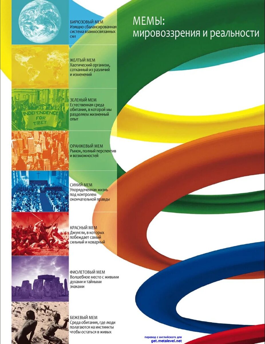 Данную модель спиральной динамики составляют мемы для психокультурной ДНК, как гены составляют нашу биохимическую ДНК.