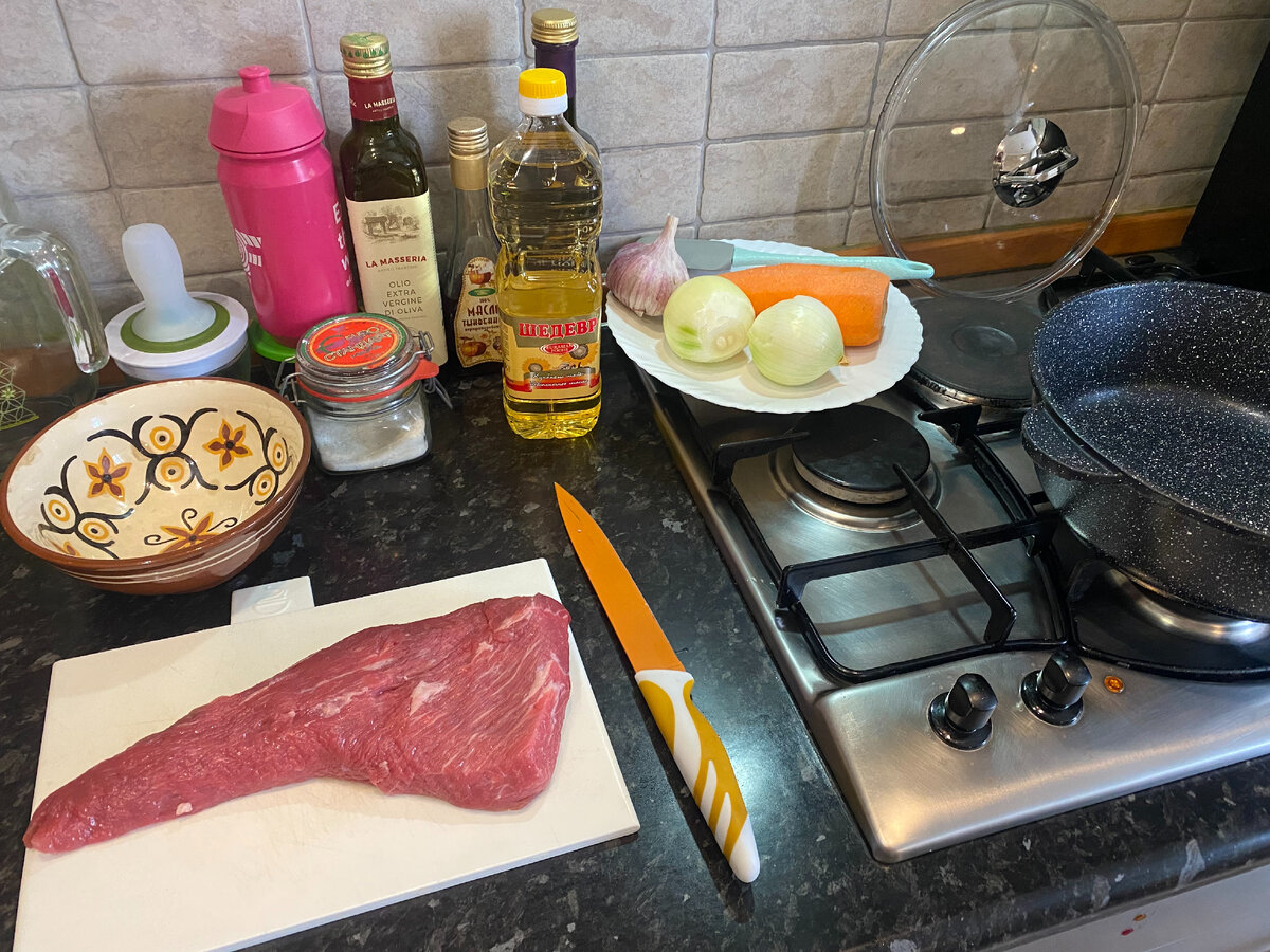 Существует бесконечное множество рецептов и способов готовить это всем известное народное блюдо. В нашей семье есть свой любимый рецепт. Для начала берем самый базовый набор продуктов Мясо говядина (я готовлю постную мякоть, жирное у нас не любят) 500 гр. 2 крупные луковицы, 1 крупная морковь, не клейкий рис 400-500гр., аппетитную головку чеснока, растительное масло, соль, любимые специи (у меня черный перец, зира, кориандр, сушеный укроп). Мясо нарезаем некрупными брусочками. Наливаем на дно казана или глубокой сковороды немного растительного масла и хорошенько нагреваем на сильном огне. Можно масло присолить и добавить немного специй - аромат пойдет сразу. Обжариваем мясо до румяной корочки на каждом кусочке Лук режем четверть-кольцами и добавляем к мясу. Перемешиваем. Морковь обязательно нарезаем на полоски ножом. Так она будет вкуснее и не превратится в кашу. хорошо обжариваем, добавляем соль и специи, накрываем крышкой на несколько минут. В это время готовим рис. Хорошо п