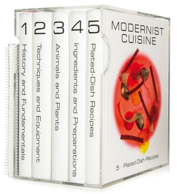 Это монументальное 6-томное издание, объемом больше двух тысяч страниц, созданное в соавторстве с выпускниками школы Хестона Блюменталя из Fat Duck. Команда из 20 человек создала самую настоящую кулинарную лабораторию, чтобы открыть новые вкусы и текстуры. Для этого они использовали ультрасовременные методы обработки продуктов.