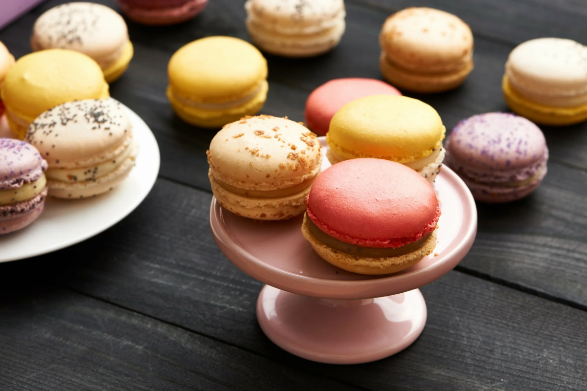 - Соедините две половинки макарон и добавьте любой крем внутрь. Чизкейк: