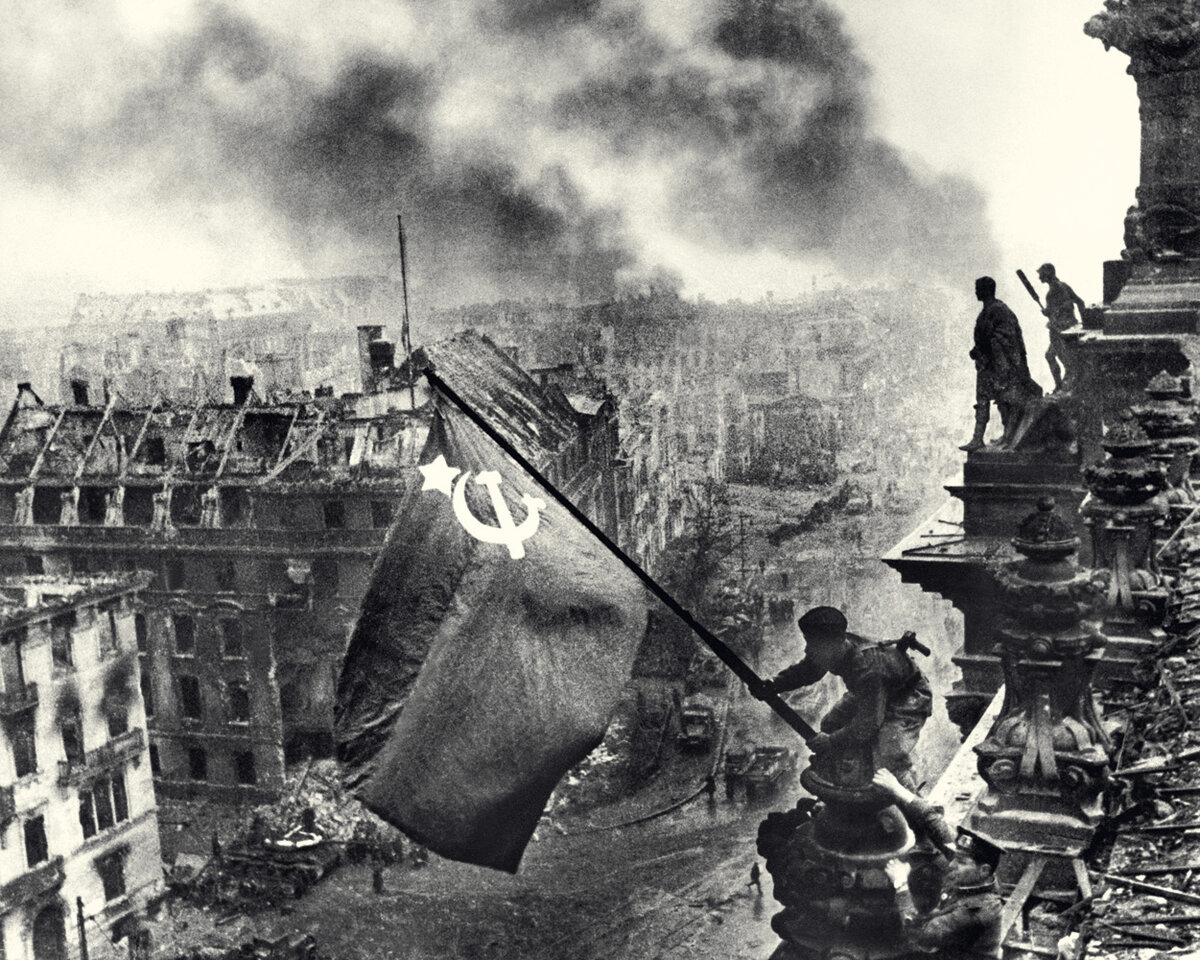 Водружение флагов и Знамени Победы явилось актом массового героизма советских воинов, многие их которых при этом героически погибли. Вот что написано в «Истории Великой Отечественной войны», т.5, стр.286: